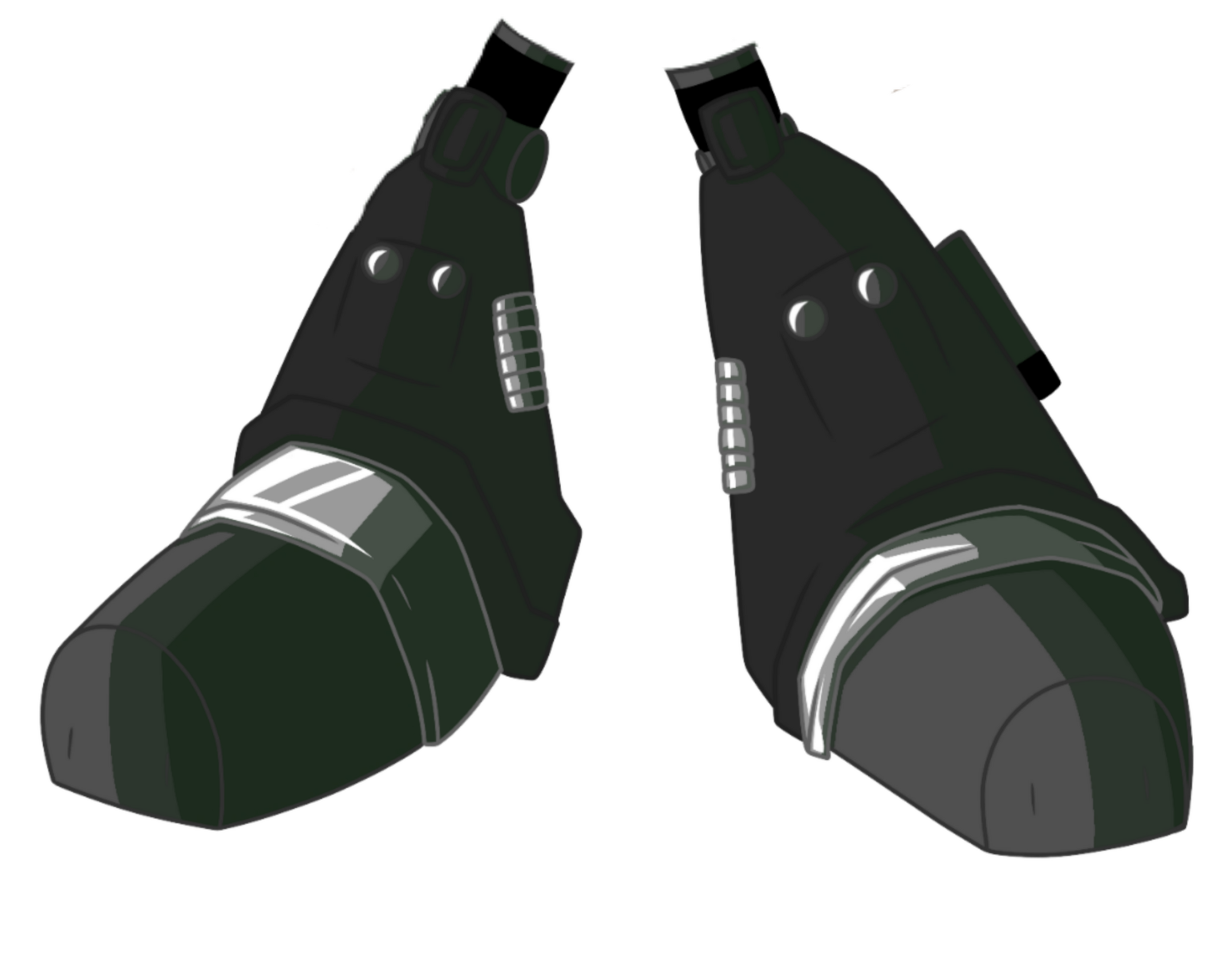 The standard legs Malachite would wear during his missions, these legs are heavy-duty and extremely heavy. They have built-in fuel containers for the rocket thrusters on the soles of the feet. These thrusters make up for the lack of speed the hedgehog naturally has whilst using them, and allow him to fly for short distances. They require more concentration to use than his testing legs.