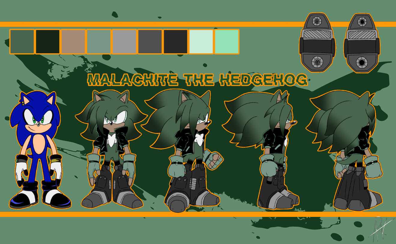Following the accident, Malachite's legs were lost. The remains still attached to his body were fitted with a robotic connection, allowing the hedgehog to use different prosthetic leg attachments for different assignments. Below are the different attachments that he has available to him.